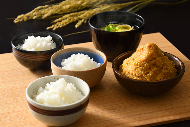 ・コシヒカリ、香の物、味噌汁