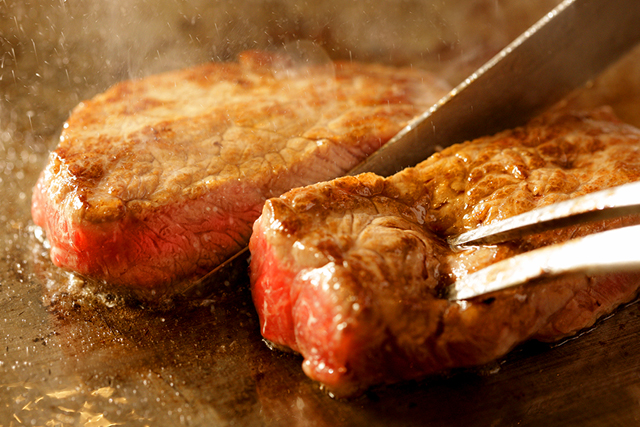 シェフが目の前で焼き上げる、特選村上牛に舌鼓