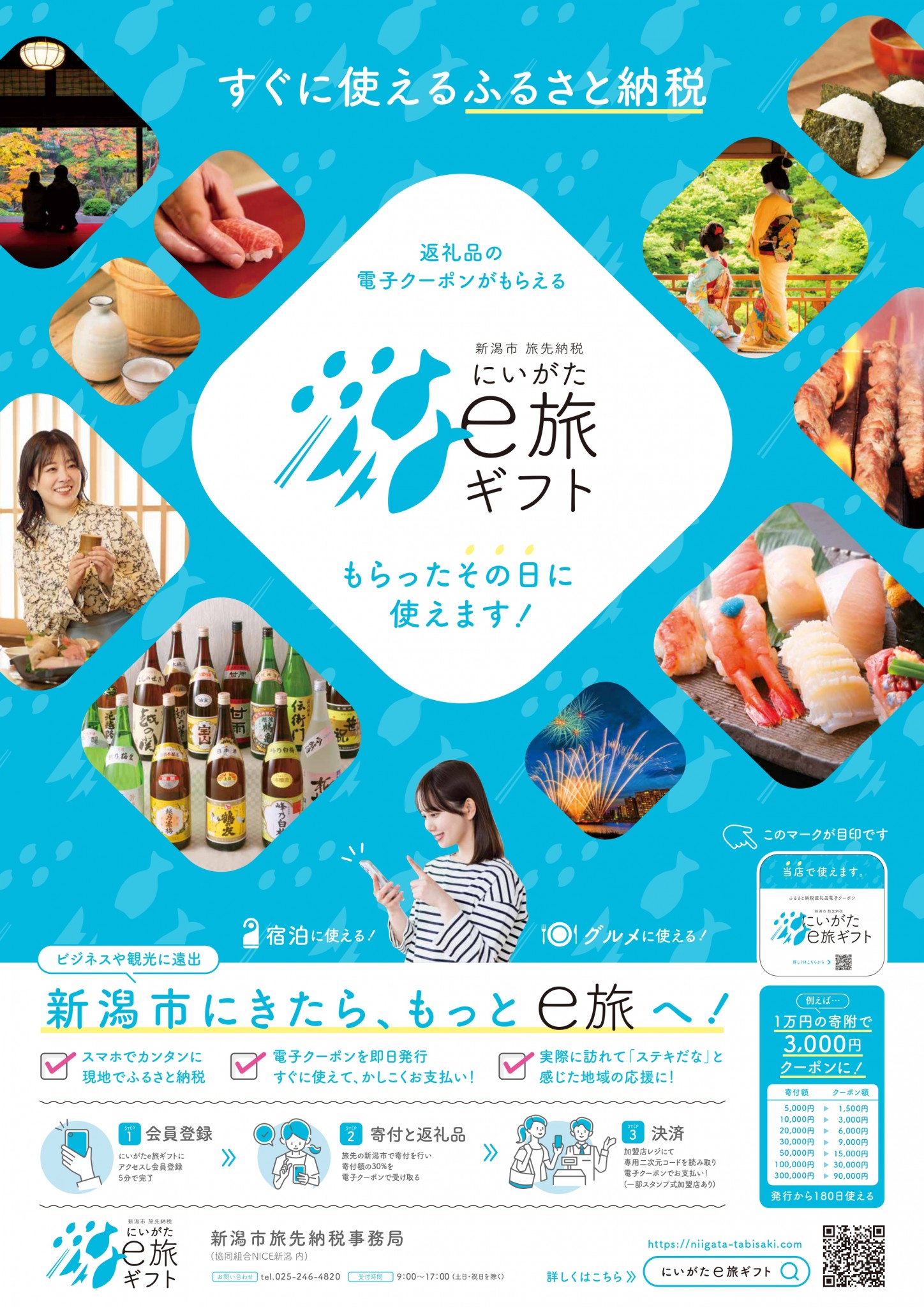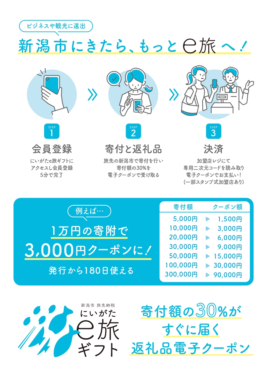 新潟市内で加盟する飲食店や宿泊施設で使うことができます。