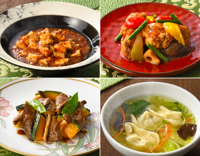 本格中国料理の王道メニュー12品から、お好きな4品を自由にセレクト。